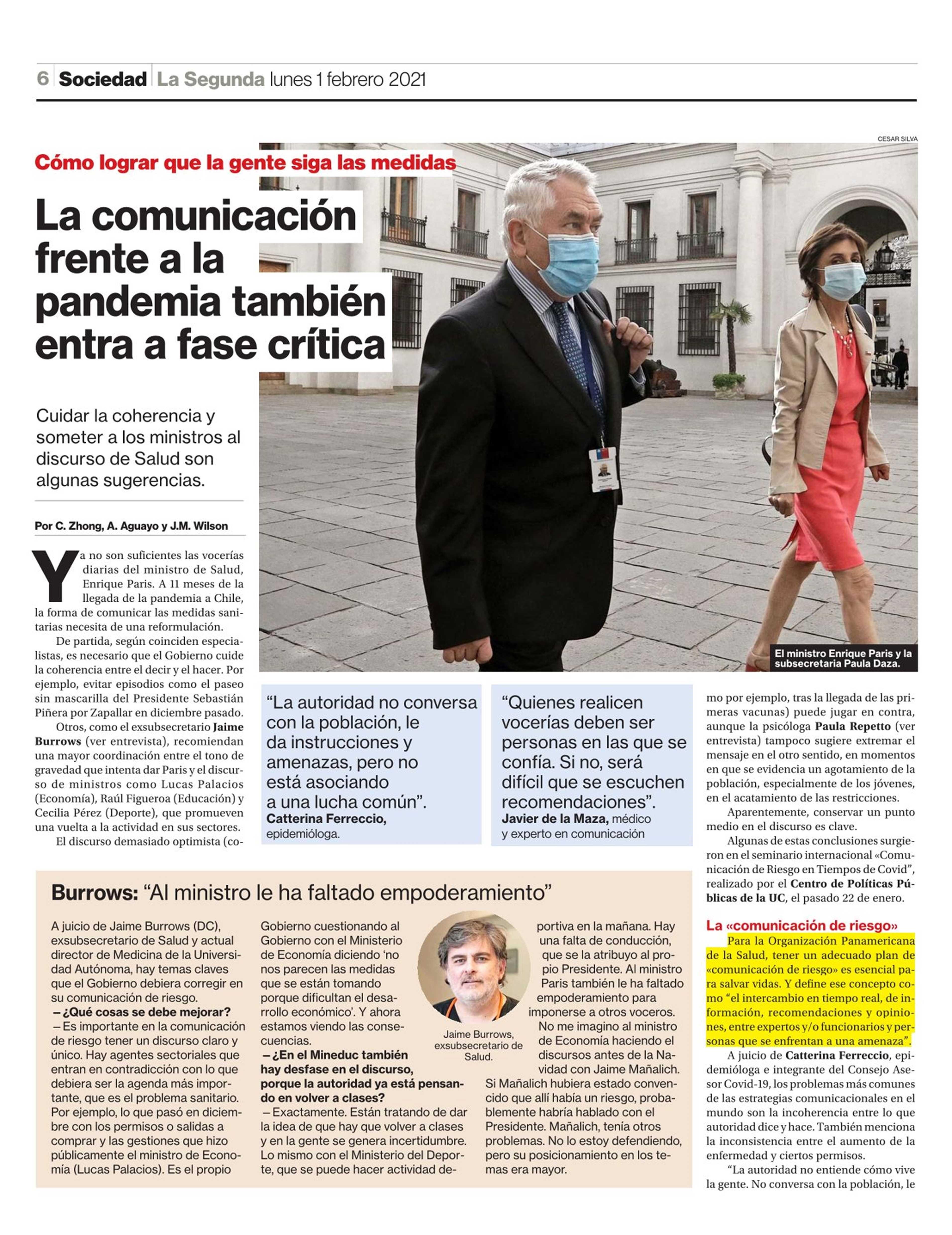 El discurso demasiado optimista (como por ejemplo, tras la llegada de las primeras vacunas) puede jugar en contra, aunque la psicóloga Paula Repetto tampoco sugiere extremar el mensaje en el otro sentido, en momentos en que se evidencia un agotamiento de la población, especialmente de los jóvenes, en el acatamiento de las restricciones. Aparentemente, conservar un punto medio en el discurso es clave. Algunas de estas conclusiones surgieron en el seminario internacional «Comunicación de Riesgo en Tiempos de Covid’, realizado por el Centro de Políticas Públicas de la UC, el pasado 22 de enero.